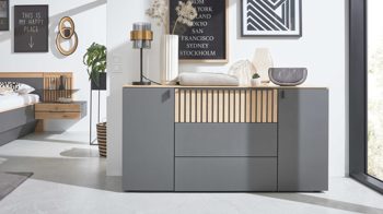 Wildeiche & Graphit - drei Schubladen, zwei Türen, Breite ca. 154 cm
