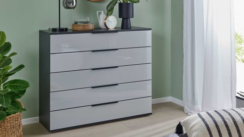 Seidengrau & Basalt - fünf Schubladen, Breite ca. 120 cm