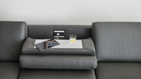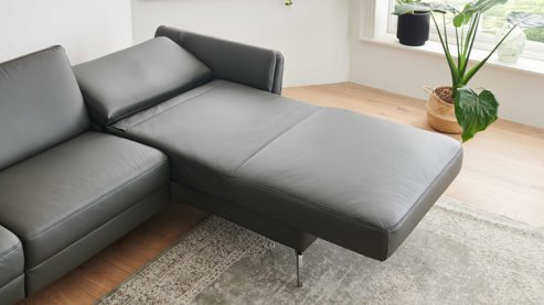 Funktionen, lederbezogene Rückseiten und weitere dargestellte Einrichtungsgegenstände sind separat gegen Mehrpreis bestellbar.