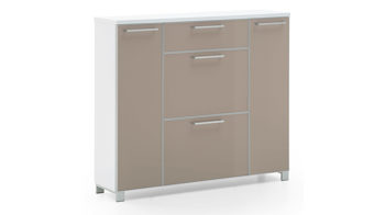 Es handelt sich um eine erstklassig verarbeitete Schuhkommode Made in Germany, die Ihnen in zwei Korpus- und drei Glasfarben zur Wahl steht. Demnach können Sie den Schuhkipper auf Ihren Geschmack abstimmen. Überdies lässt er sich bei Bedarf durch weitere Dielenmöbel im selben Design individuell ergänzen. Die Lieferung des Schranks erfolgt vormontiert.