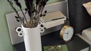 Mit Maßen von ca. 46 x 30 x 18 cm (B/LxHxT) bietet das Paneel eine praktische Ablagefläche für Bücher, Deko oder persönliche Gegenstände. Es wird linksseitig am Bett montiert und fügt sich harmonisch in das Gesamtkonzept der Serie ein.