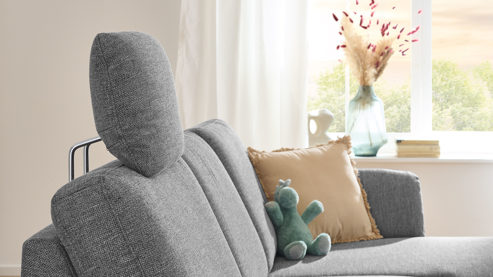 Die Comfort-Kopfstütze CKS ist passend zur Eckkombination mit stahlgrauem Flachgewebe bezogen. Sie strahlt klassische Eleganz aus und bringt tiefgründiges Flair ins Wohnzimmer. Durch die erstklassigen, hervorragend verarbeiteten Materialien ist die Kopfstütze aus der Serie MM-ZE1080 eine komfortable Ergänzung.