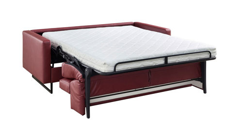dunkelroter Mikrofaserbezug, kombiniert mit matt schwarzen Metallkufen