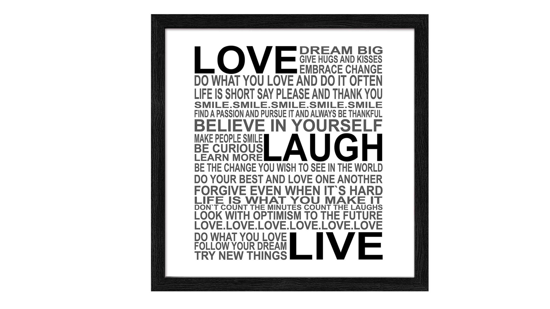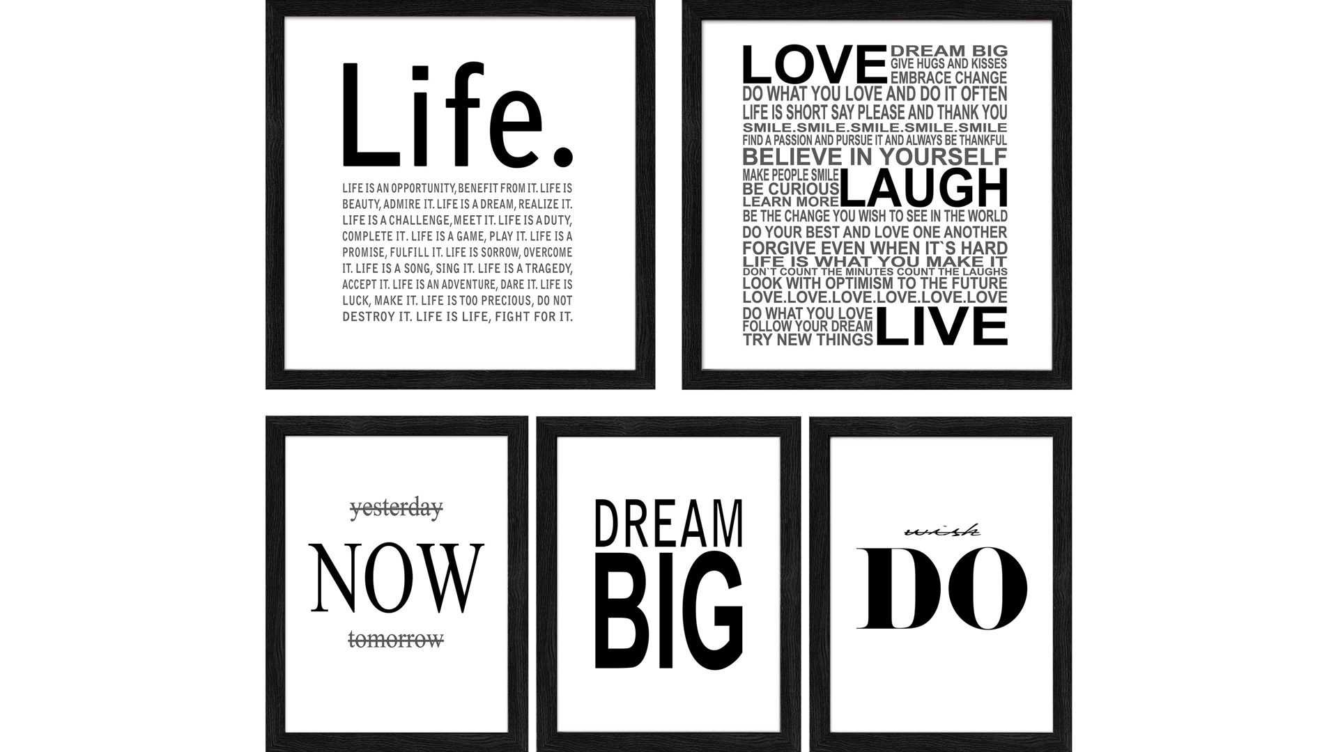 PRO®ART Bilder-Set Slim Scandic | fünfteilig | verschiedene Letter-Motive mit schwarzer Schrifz auf weißem Grund | schwarz ummanteltete MDF-Leisten | Papier auf Buchbinderkarton hinter Floatglas | Gesamtmaß ca. 54 x 54 x 1,5 cm (BxHxT) | Made in Germany | Kunstdruck-Serie