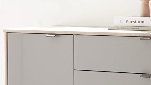 Kieselgrau & Nordic Eiche - eine Tür, fünf Schubladen Breite ca. 120 cm