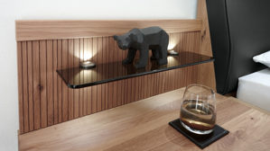 jeder Nachtkommodenaufsatz bietet Ablagefläche auf einem Rauchglasboden