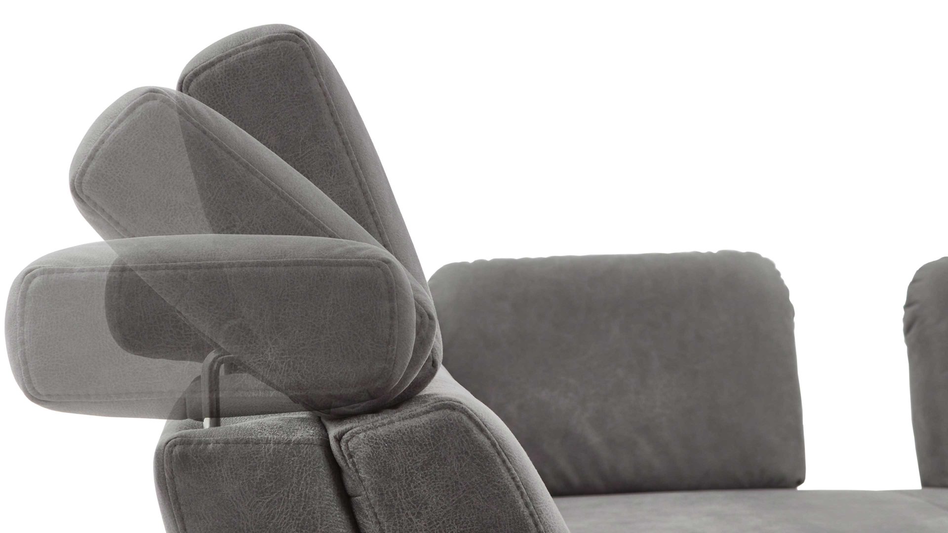 Die Polsterecke wird durch die zusätzliche Funktion dieser Kopfteilverstellung noch flexibler und komfortabler. Egal ob Sie lesen, fernsehen oder einfach nur relaxen möchten, mit der Kopfteilfunktion können Sie den Neigungswinkel des Kopfteils ganz nach Ihren Bedürfnissen einstellen und zusätzlich stufenlos in der Höhe verstellen.