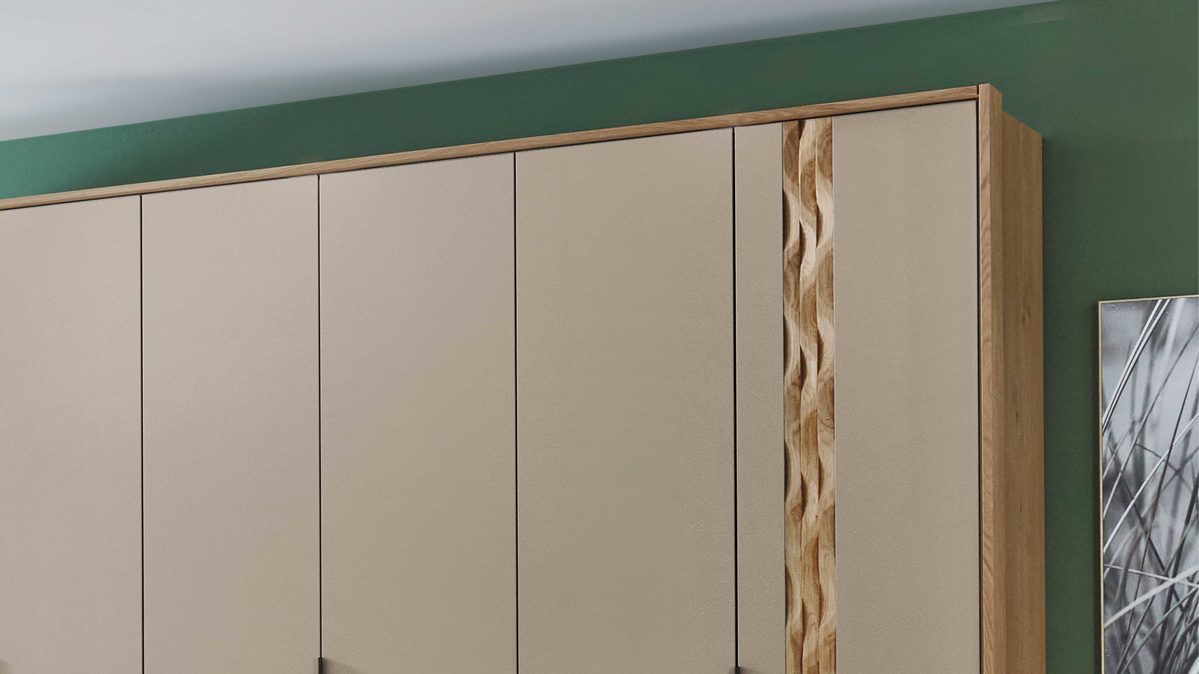 das Passepartout rahmt Kleiderschränke mit einer Breite von ca. 300 cm ein, die Kleiderschranktiefe ändert sich auf ca. 303 cm