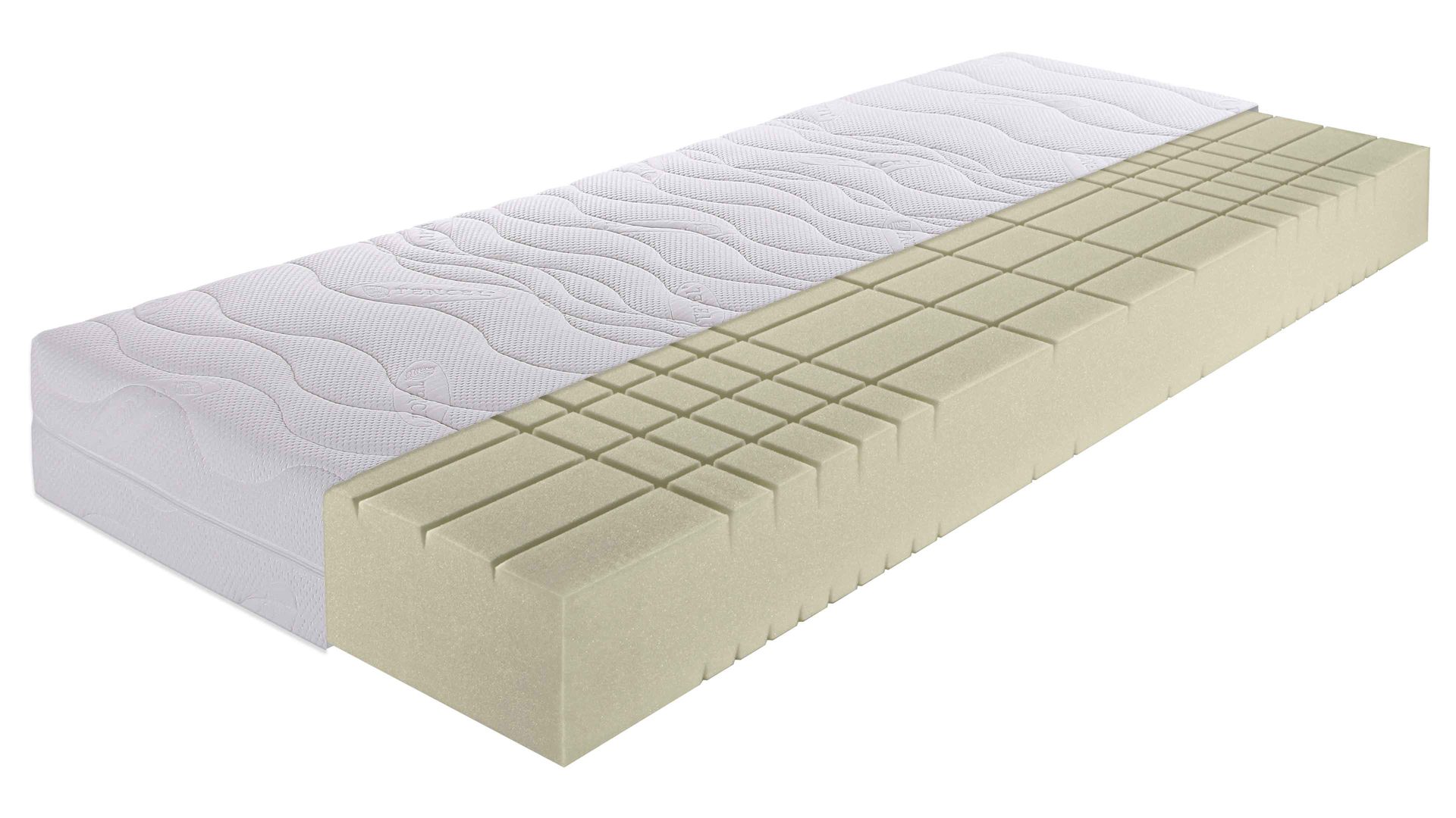 Kaltschaummatratze mit weißem TENCEL®-Doppeltuchbezug