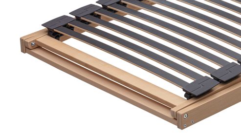 Der stabile Außenrahmen aus massivem, naturbelassenem Buchenholz sorgt für höchste Formstabilität und Langlebigkeit. Mit ca. 50 mm Höhe und ca. 22 mm Stärke (bei Standardgrößen) bietet er eine robuste Basis, die selbst bei täglicher Nutzung zuverlässig bleibt. Die 28 mehrschichtig verleimten Federholzleisten aus hochwertigem Buchenholz (ca. 36 mm breit, 5-fach verleimt und oberflächenveredelt) passen sich dynamisch deinem Körper an. Sie sind bis zu einem Körpergewicht von 130 kg belastbar. Die integrierte Schulterkomfortzone mit vier beweglichen Schultermechaniken sorgt für sanftes Einsinken – ideal für Seitenschläfer und alle, die Wert auf punktgenaue Entlastung legen.