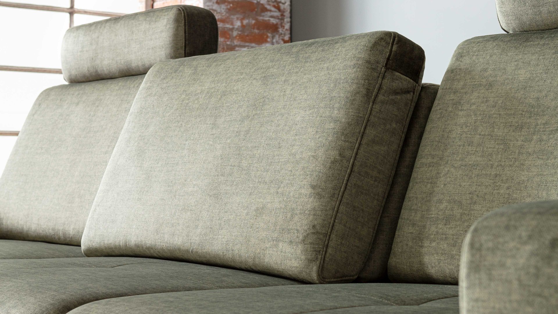 Des Weiteren können Sie einige Details an Ihre Wünsche und Bedürfnisse anpassen. Die Polstermöbel sind preisgleich mit einer soften Kaltschaum- oder etwas festeren Federkernpolsterung sowie mit mattschwarzen oder glänzenden Metallfüßen erhältlich. Darüber hinaus profitieren Sie von der umfangreichen Bezugauswahl. Es sind verschiedene Zusammenstellungen planbar, die sich mit vielen Funktionen ergänzen lassen.