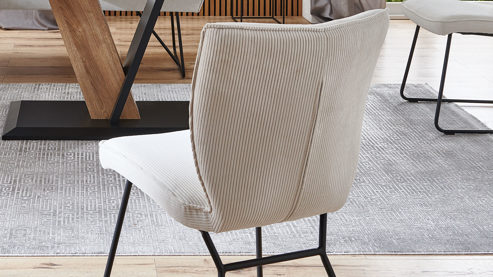 dazu passend sind eine Eckbank, weitere Stuhlvarianten und in drei Cordfarben erhältlich