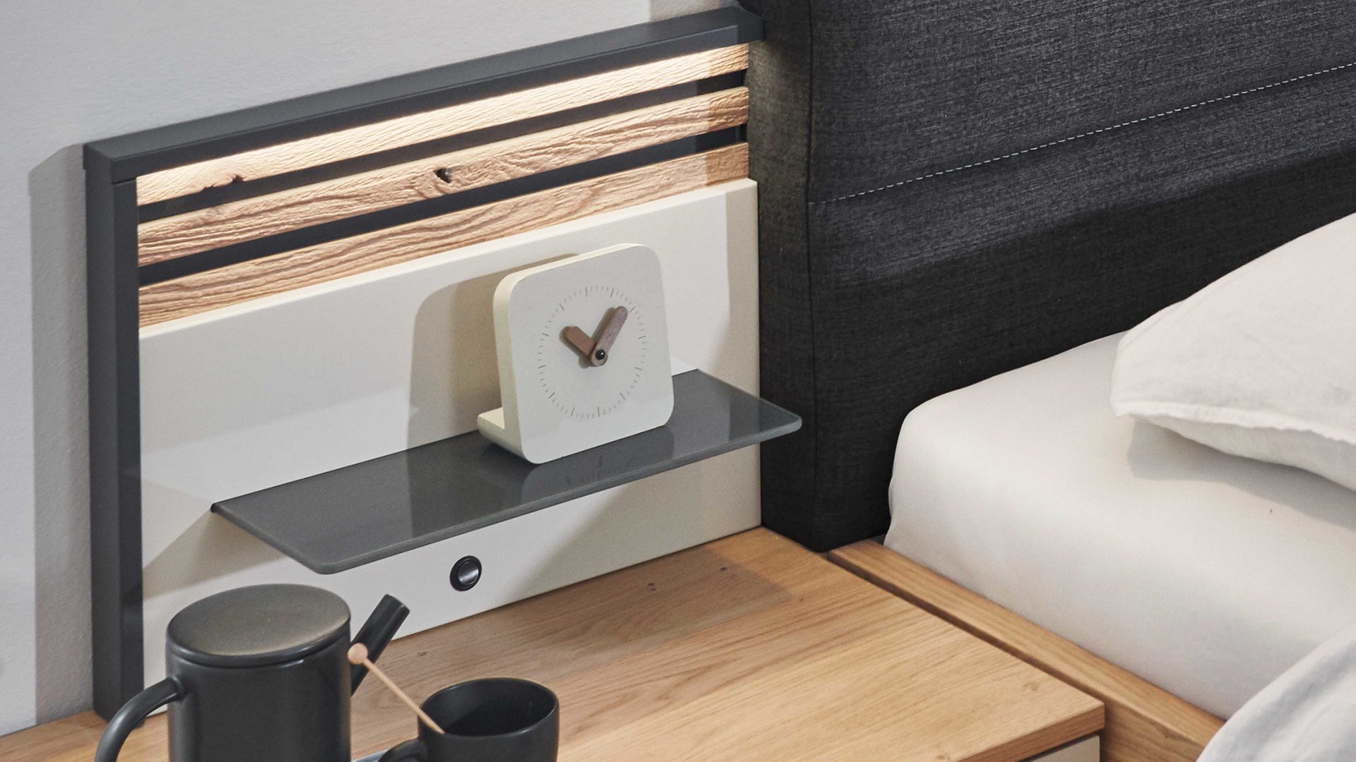 Gestalten Sie Ihr Schlafzimmer ganz nach Ihren individuellen Vorstellungen und setzen Sie mit dem Paneelaufsatz der C. DISSELKAMP Schlafzimmerserie Cabrillo ein stilvolles Highlight und ergänzen Sie den Rückwand-Aufsatz mit LED-Beleuchtung.
