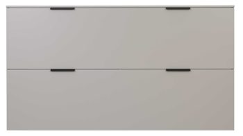 Hinter den beiden großzügigen Klapptüren verbirgt sich eine clevere Innenaufteilung: Vier Einlegeböden bieten reichlich Platz für Sneaker, Stiefeletten, Sandalen oder Sportschuhe. Die leichtgängige Klappmechanik sorgt dafür, dass du jederzeit bequem an deine Lieblingspaare kommst – besonders praktisch bei häufigem Schuhwechsel oder für Familien mit vielen Schuhen.