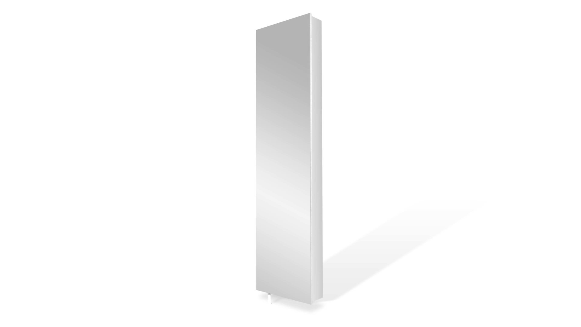weiße Kunststoffoberflächen - fünf Fächer & ein Ablageboden, eine Spiegeltür