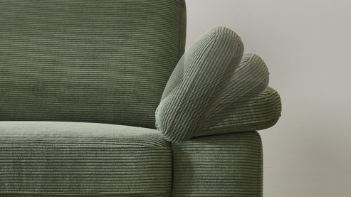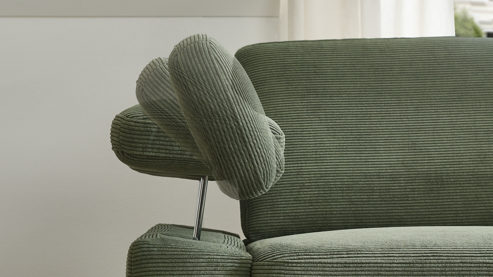 olivgrüner Feincordbezug und mattschwarze Metallfüße