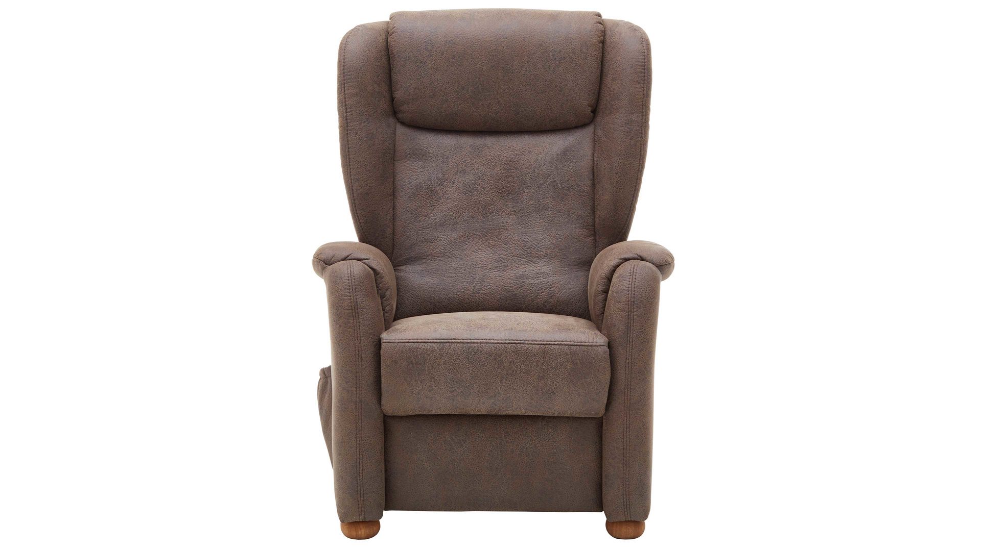 Der schokobraune Mikrofaserbezug mit beiger Kontrastnaht und die biancofarbenen Eichenholzfüße harmonieren hervorragend miteinander und sorgen für eine warme Atmosphäre im Lesezimmer oder Wohnbereich. Der Rücken des ca. 101 x 96 x 92 cm (BxHxT) großen Polstermöbels ist stoffbezogen, weshalb es sich unter anderem als Hingucker mitten im Raum bewährt.
