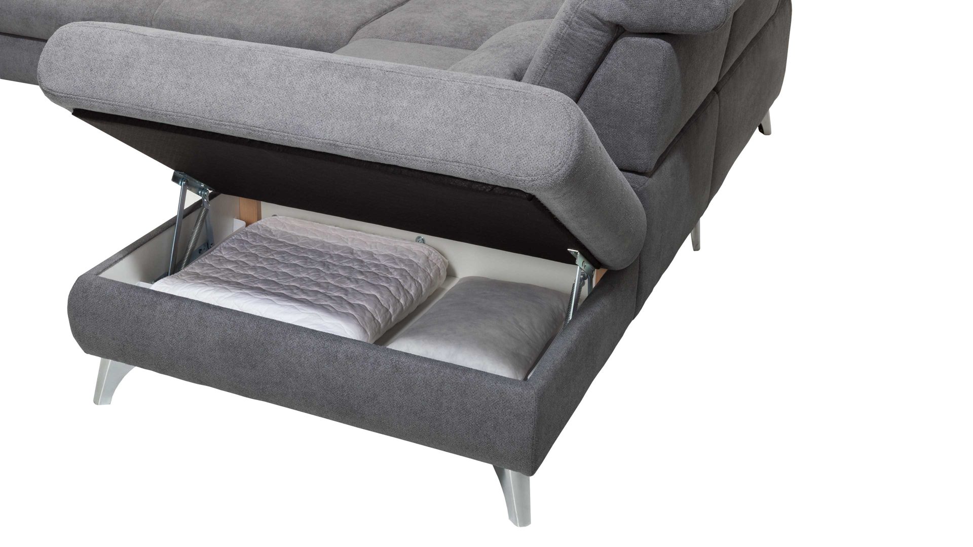Mit der praktischen Möglichkeit, die Sitzfläche im Handumdrehen hochzuklappen und den Raum darunter zur Aufbewahrung verschiedener Gegenstände (Kuscheldecken, Zierkissenbezüge et cetera) zu nutzen, verwandelt sich das jeweilige Abschlusselement in ein multifunktionales Möbel - flexibel einsetzbar und gemütlich. Der Mehrpreis wird pro Element berechnet.