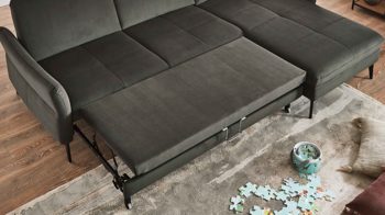 Zu den Highlights des Polsterprogramms gehören die grundsätzlich im Originalstoff bezogenen Rückseiten sowie die für Staubsaugerroboter ideale Bodenfreiheit. Die Serie ist Made in Europe und mit dem Goldenen M ausgezeichnet.