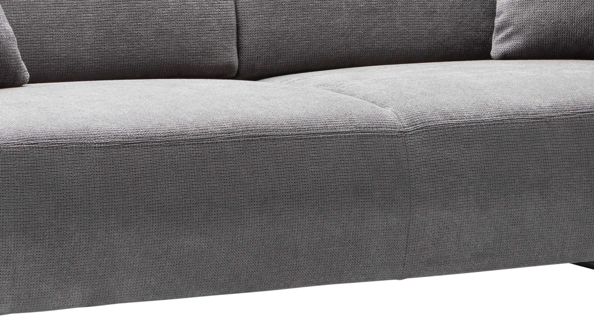 Der moderne 3-Sitzer Dana kombiniert einen stilvollen steinfarbenen Stoffbezug mit mattschwarz lackierten Metallkufen und strahlt schlichte Eleganz aus. Dadurch fügt er sich in unterschiedliche Wohnstile stimmig ein.