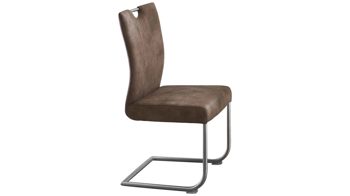 Sowohl das angenehme Sitzgefühl als auch die erstklassige Optik des gepolsterten Freischwingers begeistern dabei im alltäglichen Gebrauch. Das Sitzmöbel hat einen braunen Mikrofaserbezug, der zum einen wunderbar weich und zum anderen pflegeleicht ist. Außerdem steht der Polsterstuhl auf einem gebürsteten Edelstahlgestell, wodurch das Sitzmöbel sehr modern wirkt. So kombinieren Sie es besonders gut zu Ihrem Holztisch im Wohnzimmer oder zu Ihrem stilvollen Esstisch in Ihrer Wohnküche.