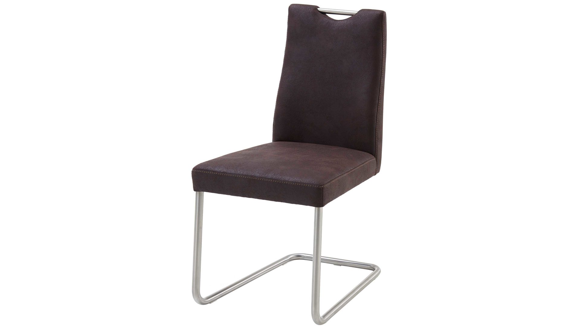 Der komfortable Polsterstuhl begeistert im zeitlosen Design, das sich hervorragend in Ihr Esszimmer oder Ihre Küche einfügt. Das Rundrohrgestell in Edelstahloptik harmoniert dabei hervorragend mit dem dunkelbraunen Mikrofaserbezug – dieser Materialmix ist ein wohnlicher Kontrast, der Blicke auf sich zieht. Ebenfalls überzeugend sind diese Maße: ca. 47 x 97 x 60 cm (BxHxT) bei einer Sitzhöhe von ca. 50 cm.