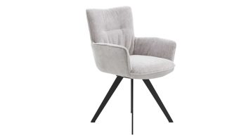 Die Rückenlehne mit markanter Quernaht und die Kaltschaumpolsterung bieten angenehmen Sitzkomfort, während die Armlehnen für extra Bequemlichkeit sorgen. Dank des Drehgestells mit Rückhol- und Memoryfunktion ist der Funktionsstuhl 360 Grad drehbar und kehrt nach dem Aufstehen automatisch in seine Ausgangsposition zurück – perfekt für maximale Bewegungsfreiheit am Esstisch.