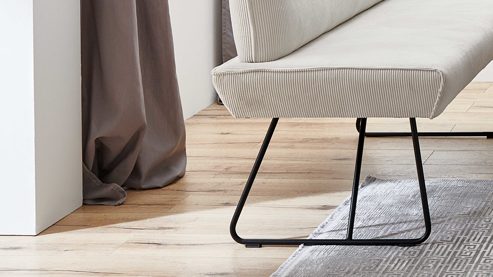 cremeweißer Cordbezug, kombiniert mit mattschwarzem Eisen