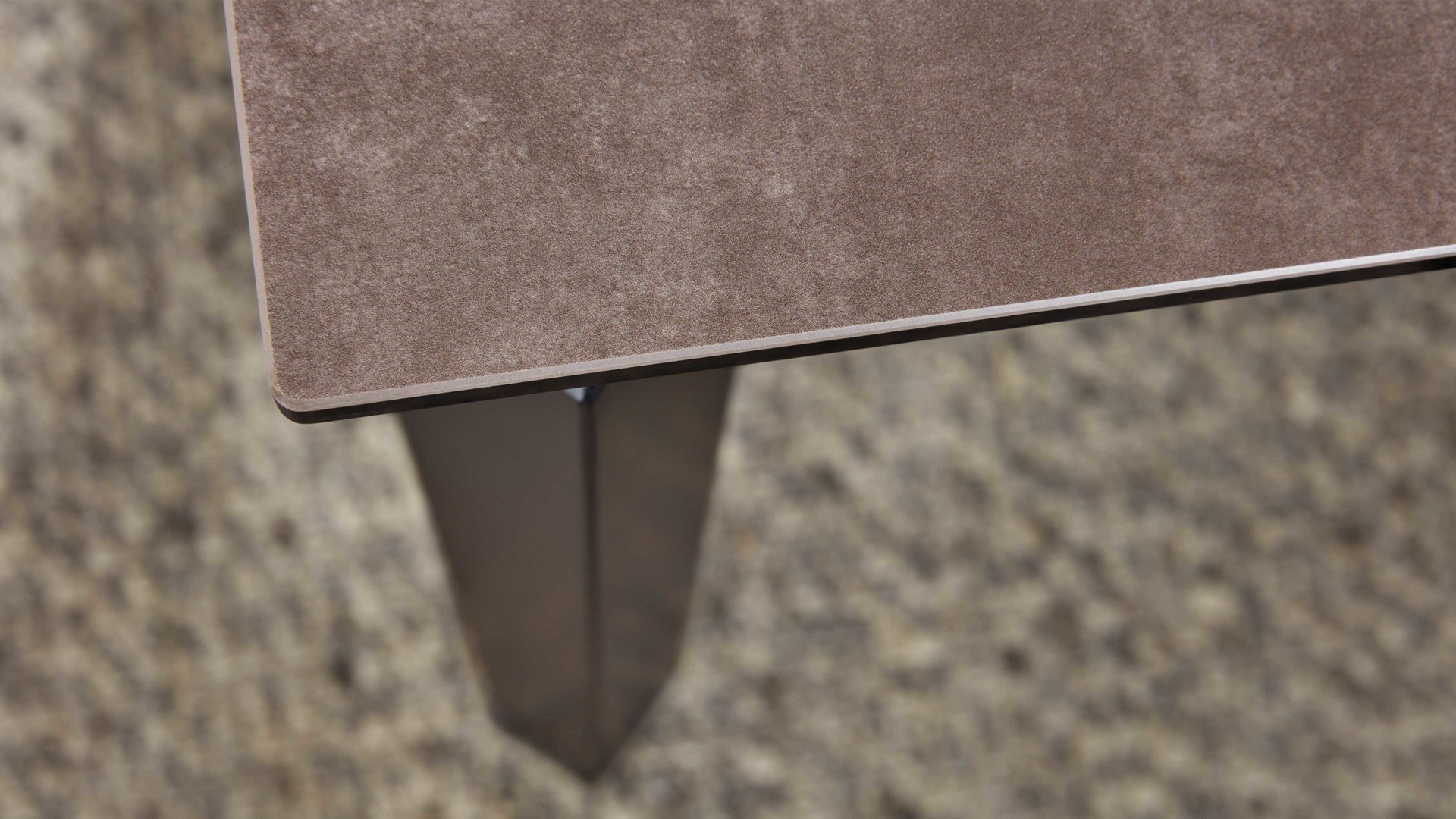 Die hochwertige Glaskeramikplatte ist kratzfest, pflegeleicht und besonders widerstandsfähig im Alltag. In Kombination mit dem massiven Eisengestell entsteht ein ausdrucksstarkes Design, das Wärme und Modernität perfekt verbindet.