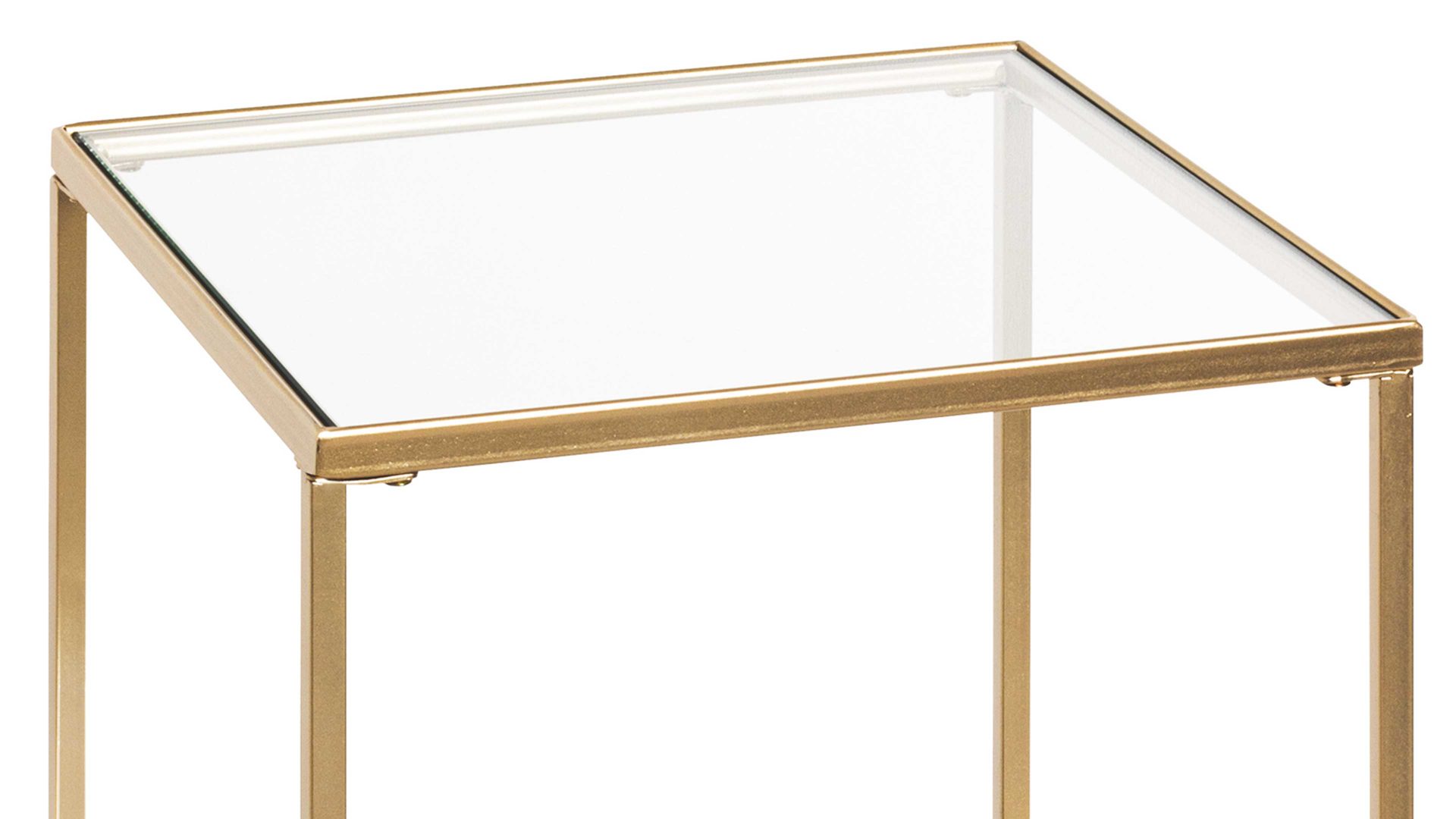Der Beistelltisch Porto ist mit seinem modernen und eleganten Design ein absoluter Hingucker. Er kombiniert ein goldfarben lackiertes Metallgestell mit zwei Ablagen: Die obere besteht aus Sicherheitsglas und die untere aus Spiegelglas. Dank der hochwertigen Materialien ist das Tischchen robust, widerstandsfähig und langlebig. Seine Maße belaufen sich auf ca. 39 x 55 x 39 cm (BxHxT).