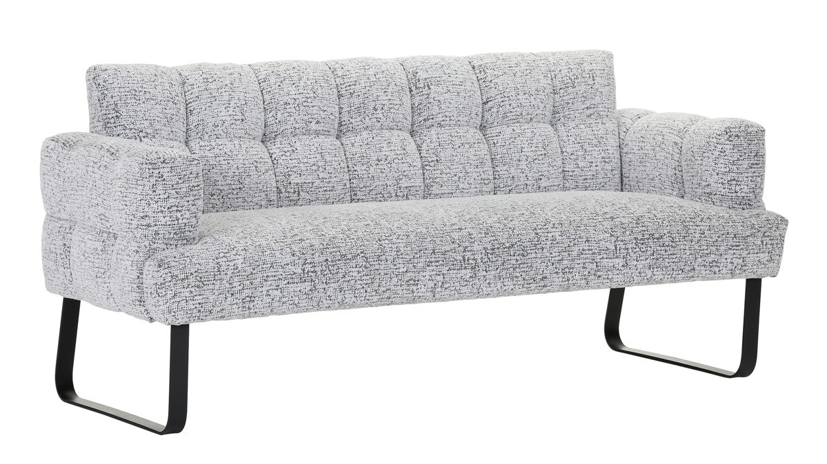 hellgrauer Chenillebezug, kombiniert mit schwarzen Metallkufen