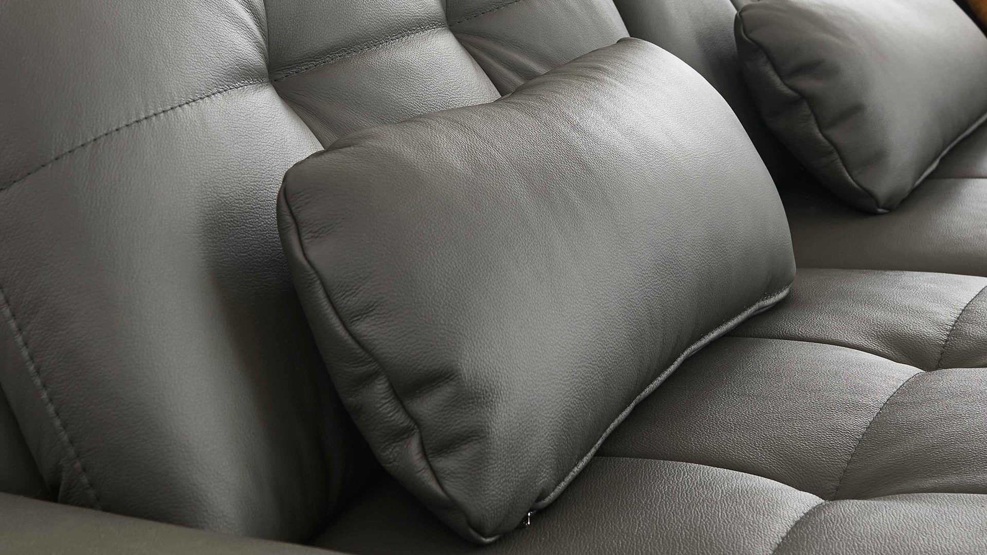 Das Nierenkissen ist ein komfortables und dekoratives Zubehör für die Sofas aus dem Modulmaster-Polsterprogramm MM-PN1078. Mit dem grau pigmentierten Glattlederbezug präsentiert es sich modern und elegant.