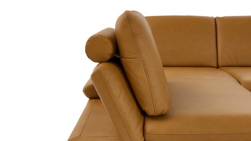 kurkumafarbener Semi-Anilin-Lederbezug mit softem Griff und feiner Lederstruktur