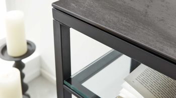 Schlank, edel, vielseitig – der Konsoltisch aus der Interliving Couchtisch Serie 6210 vereint modernes Design mit langlebiger Qualität. Die trendige zementgraue Keramiktischplatte in edel marmorierter Optik, die Ablage aus Klarglas und das schwarz lackierte Stahlgestell bilden eine harmonische Kombination, die Eleganz und Stabilität perfekt vereint. Ein stilvoller Blickfang, der in jedem Raum – ob Wohnzimmer, Essbereich oder Flur – für eine moderne, zeitlose Note sorgt.