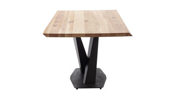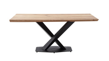 Tischplatte ca. 4 cm stark, aufgedoppelt, durchgehende Lamelle mit reverser Baumkante