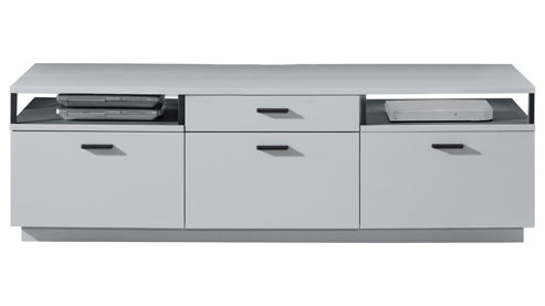 dreitüriges Lowboard mit einer Schublade und zwei offenen Fächern