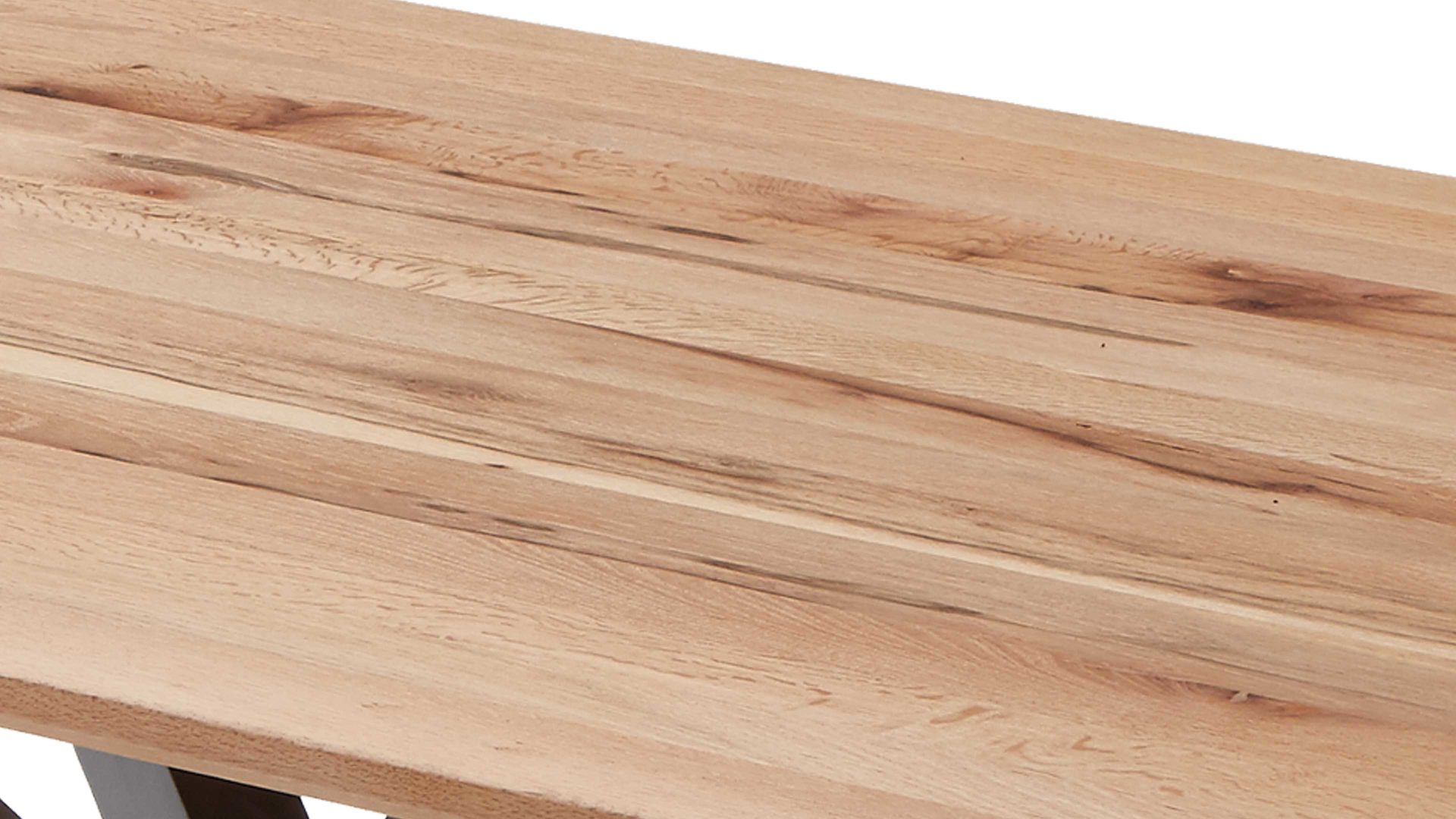 Den Höhepunkt des Esszimmertisches bildet die Massivholz-Tischplatte mit Facettenprofil. Sie besteht aus strukturgehobelter Balkeneiche mit charakteristischen Gebrauchsspuren, die ihr und dem gesamten Tisch das gewisse Etwas verleihen. Die Maße des stilvollen Holzplattentisches Windhoek belaufen sich auf ca. 180 x 76 x 100 cm (LxHxB). Alternativ ist er noch in zwei weiteren Größen erhältlich.