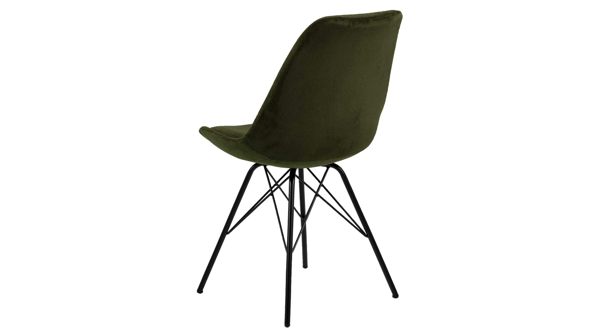 Der Polsterstuhl Eris verkörpert klassische Eleganz. Als stabile, dabei aber wunderbar filigran designte Basis fungiert ein mattschwarz pulverbeschichtetes Stahldrahtgestell. Darauf befindet sich eine olivgrüne Sitzschale aus robustem Kunststoff. Sie ist rundherum mit Feincord bezogen, ebenfalls in Olivgrün. Der angesagte Feincordbezug überzeugt sowohl qualitativ als auch optisch und haptisch.