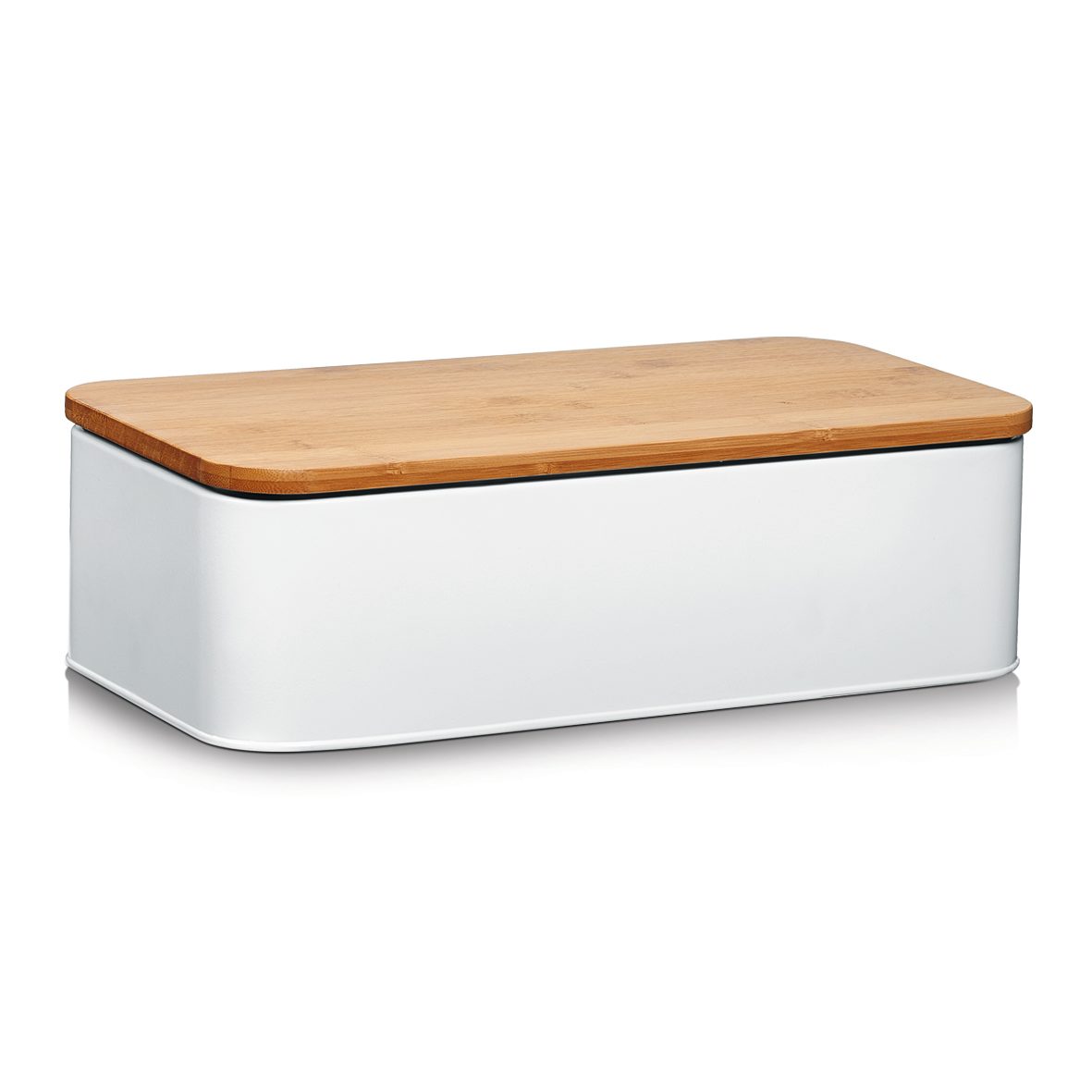 Der weiße Korpus aus pulverbeschichtetem Metall harmoniert wundervoll mit dem natürlichen Bambusdeckel. Die Maße von ca. 31 x 13 x 18 cm (LxHxT) ergänzen sowohl kleine Pantry-Küchen, Einbauküchen als auch großzügige Ausführungen mit Kochinsel. Für eine optimale Atmosphäre für lang anhaltende Frische Ihrer Backwaren sorgt die Rückseite mit Lüftungslöchern.