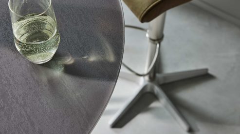 Die runde Tischplatte aus grauem Glas mit strukturierter Oberfläche setzt stilvolle Akzente und sorgt zugleich für eine pflegeleichte Nutzung. In Kombination mit dem formschönen Gestell aus gebürstetem Edelstahl entsteht ein hochwertiger Bistrotisch, der sich nahtlos in moderne Wohnkonzepte einfügt. Alternativ kannst du das Gestell auch in mattschwarz pulverbeschichtetem Metall wählen – für noch mehr Gestaltungsspielraum in deinem Zuhause.
