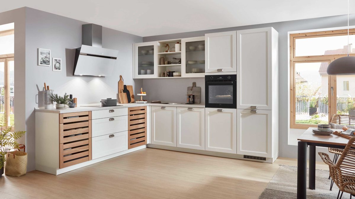 nobilia® Einbauküche Cascada mit Einbaugeräten – moderner Landhausstil in Weiß