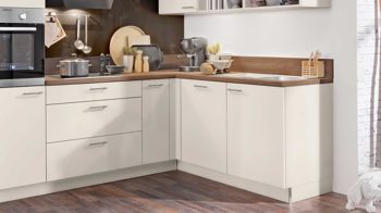 Hinzu kommt eine hochwertige Edelstahl-Einbauspüle. Optional können Sie die Küche Made in Germany auch mit einem praktischen Geschirrspüler erweitern.