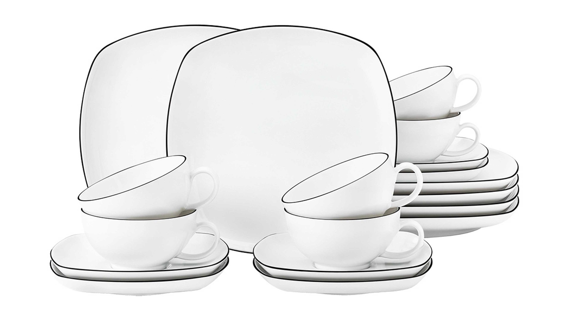 Kaffeeservice Seltmann weiden aus Porzellan in Weiß Seltmann Kaffeeservice Lido weißes Porzellan - 18-teilig, eckig