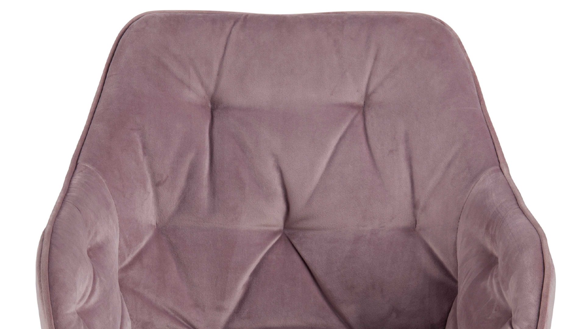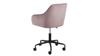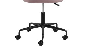 Dabei harmoniert der Drehstuhl in seiner sanften Formensprache mit zahlreichen Einrichtungsstilen: Dafür sorgt der pastellrosa Samtbezug, der die gesamte Sitzschale inklusive der bequemen Armlehnen weich umhüllt. Das pulverbeschichtete Metall-Drehkreuz fließt in mattem Schwarz stimmig in das Gesamtbild ein.