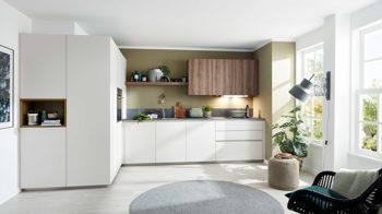Bei der WERT KÜCHE® Franziska handelt es sich um ein individuell planbares Küchenprogramm Made in Germany. Optional ist sie mit einem Geschirrspüler und einer Armatur erweiterbar.