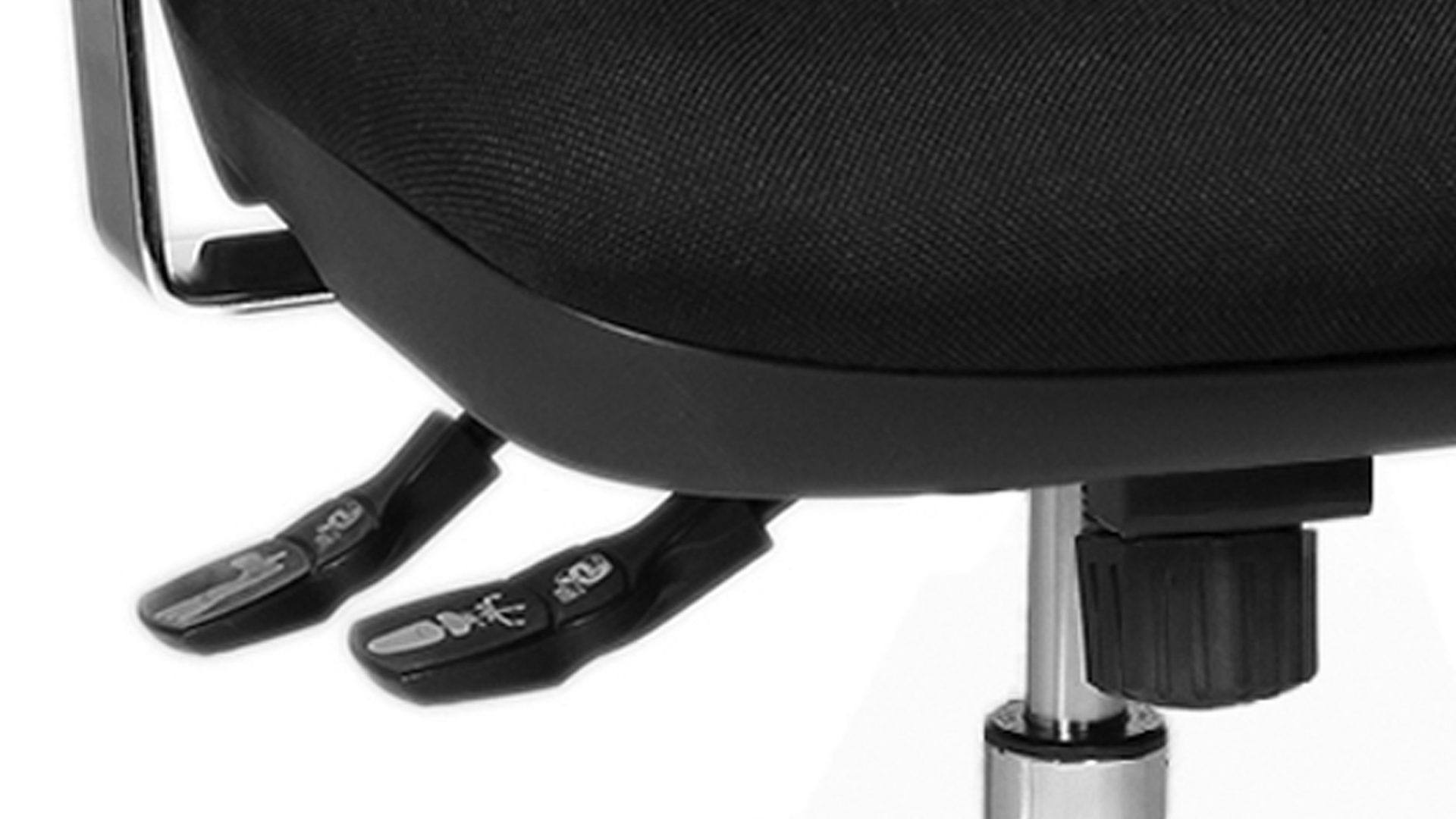 Zu den funktionalen Highlights gehört zudem die Punktsynchronmechanik zur Neigungsverstellung von Sitz und Rückenlehne. Diese mehrfach arretierbare Einstellung gilt es an das eigene Körpergewicht zu adaptieren.
