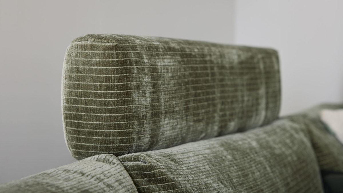die chromfarbenen Metallbügel werden in einen Zwischenraum an der Rückseite des Polstermöbels gesteckt