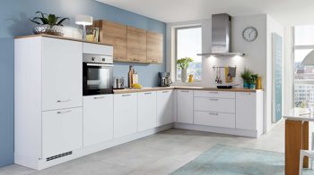 Dabei besticht die Planküche in L-Form mit einer Stellfläche von ca. 365 x 247 cm (BxL) und ausreichend Platz für komfortables Kochen und Backen.