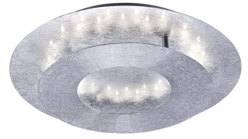 Gold oder Silber – in diesen edlen Farben gibt es die Deckenlampe des Herstellers Paul Neuhaus. Mit dieser Lampe aus silberfarbenem Metall erhalten Sie eine außergewöhnliche Lichtquelle für Ihr Wohnzimmer. Auch in Ihren Flur oder Eingangsbereich passt die LED-Deckenleuchte Nevis mit einem Durchmesser von ca. 27 cm. An der Deckenplatte befindet sich ein kleiner Ring mit einem Durchmesser von ca. 17 cm.