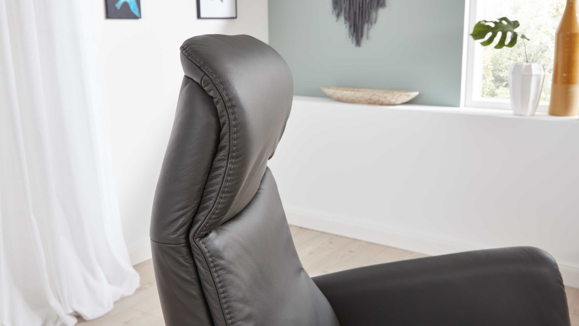 Dank der hochwertigen Polyätherschaumpolsterung auf einer Wellenunterfederung, der ergonomischen Rückenlehne C, den Vollpolster-Armlehnen 2 und der angenehmen Haptik des feinen Leders genießen Sie auf dem Fernsehsessel hohen Sitzkomfort.